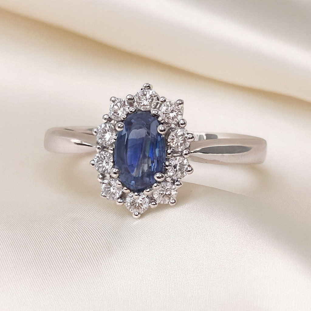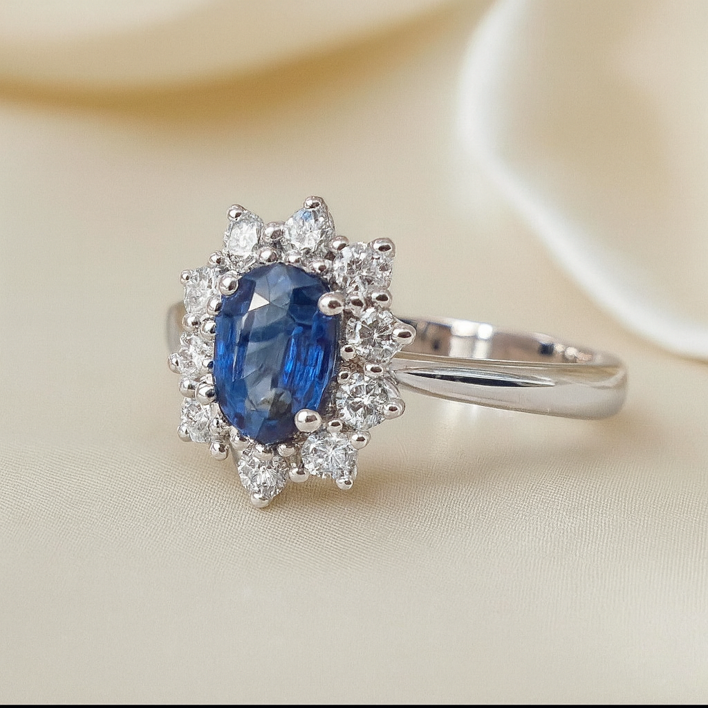 ANELLO ZAFFIRO CON 8 DIAMANTI