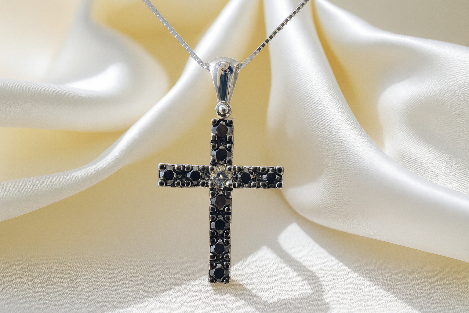 PENDENTE CROCE DIAMANTI NERI E DIAMANTE CENTRALE BIANCO CR06 quantità