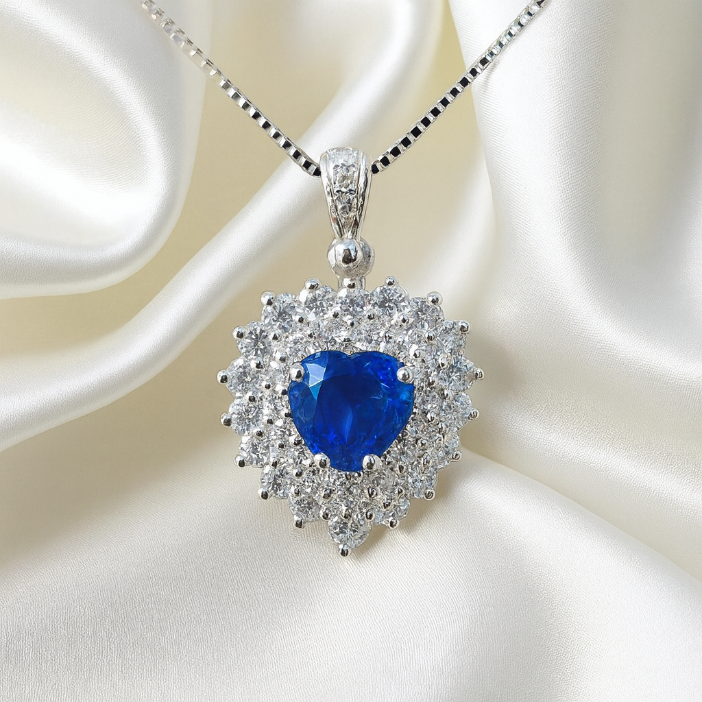 PENDENTE ZAFFIRO CUORE CON DIAMANTI PE16